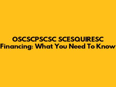OSCSCPSCSC SCESQUIRESC Financing: What You Need To Know