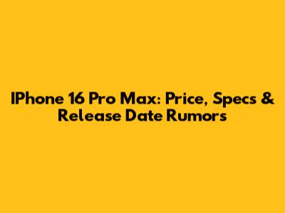 IPhone 16 Pro Max: Price, Specs & Release Date Rumors