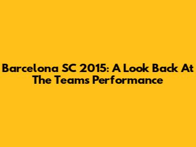 Barcelona SC 2015: A Look Back At The Team's Performance