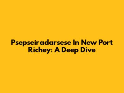 Psepseiradarsese In New Port Richey: A Deep Dive