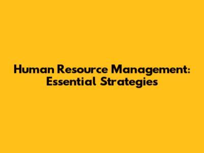 Human Resource Management: Essential Strategies