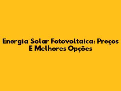 Energia Solar Fotovoltaica: Preços E Melhores Opções