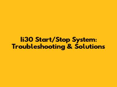 Ii30 Start/Stop System: Troubleshooting & Solutions