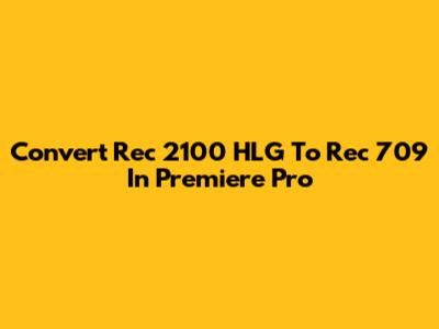 Convert Rec 2100 HLG To Rec 709 In Premiere Pro