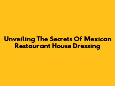 Unveiling The Secrets Of Mexican Restaurant House Dressing