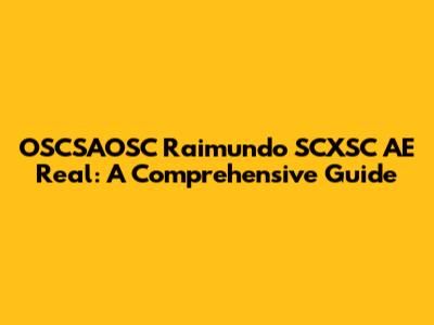 OSCSAOSC Raimundo SCXSC AE Real: What You Need To Know