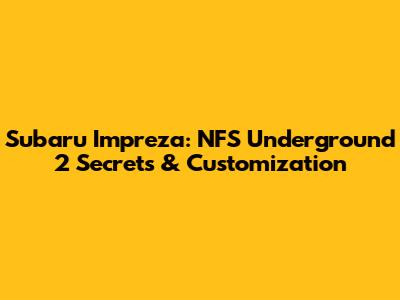 Subaru Impreza: NFS Underground 2 Secrets & Customization