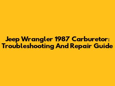 Jeep Wrangler 1987 Carburetor: Troubleshooting And Repair Guide