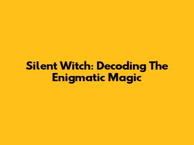 Silent Witch: Decoding The Enigmatic Magic